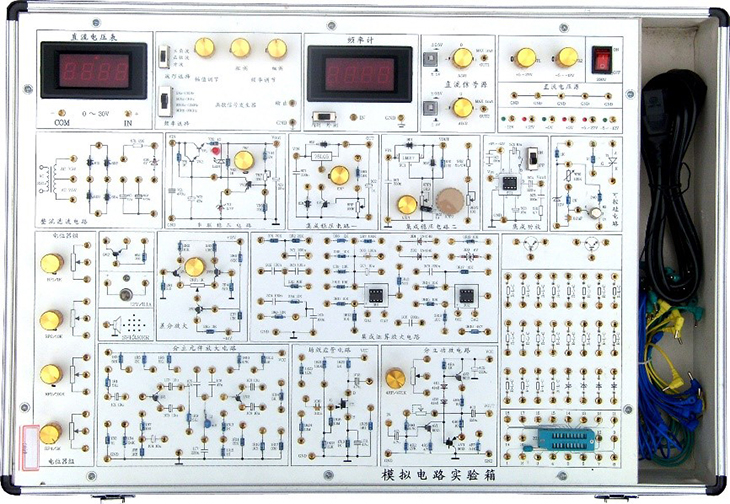 模擬電路實驗箱是根據(jù)《高等工業(yè)學(xué)校電子技術(shù)基礎(chǔ)》教學(xué)大綱中確定的教學(xué)實驗要求為基礎(chǔ),汲取了眾多專業(yè)教師的教學(xué)經(jīng)驗,并綜合了眾多同類產(chǎn)品的優(yōu)點而設(shè)計的。它函蓋了《模擬電子技術(shù)基礎(chǔ)》課程全部實驗內(nèi)容,既為初學(xué)者提供了驗證性實驗電路,又為課程設(shè)計提供了擴展平臺。