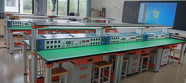 電工電子實訓裝置、電工電子實訓室設備是職業院校電子信息、計算機大類機、裝備制造大類相關專業的必備實訓設備。電工電子實訓平臺為大數據技術應用、物聯網技術應用和智能網聯汽車技術專業共用實訓室。本電工電子實訓裝備選型依據三個專業人才培養方案和教育部三個專業的實訓裝備標準,在三個專業崗位技術、傳統電工電子實訓設備和現代新型實訓設備調研基礎上,并參照新技術要求和新型設備進行定級選型。本次擬采購的電工電子實訓裝置在傳統的設備基礎上進行了升級和完善,增加了更多的實驗項目和功能模塊,并能夠結合電工電子仿真軟件進行虛實結合教學。設備滿足《電路分析》、《交流電路》、《數字電路》、《模擬電路》等課程實驗大綱的要求。
