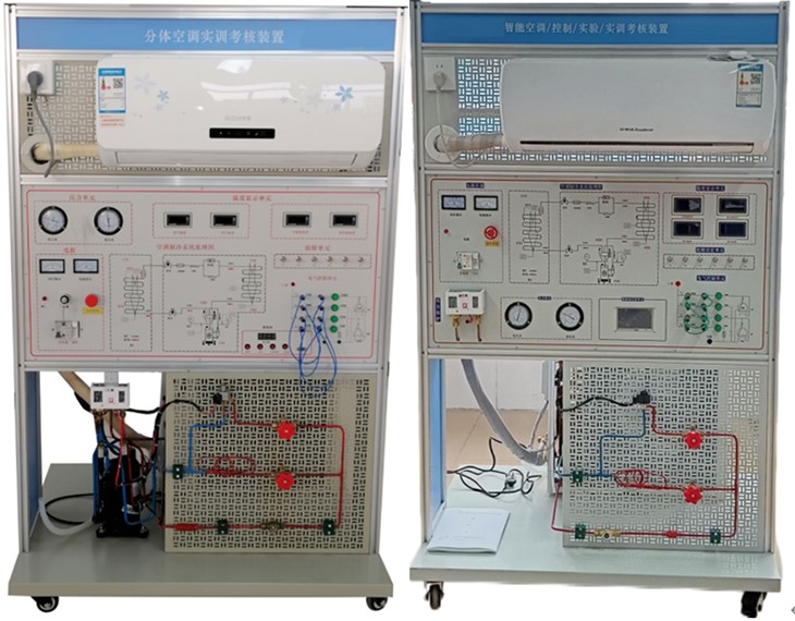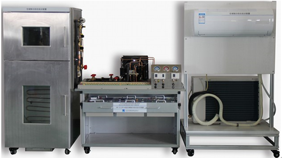 制冷制熱實訓設備,制冷制熱實驗臺,空調實訓臺,制冷制熱實訓室是根據《教育行業標準-電子技術應用專業儀器設備配備標準》勞動和社會保障部發布的《家用電子產品維修工職業技能實訓和鑒定設備技術規范》制冷制熱實訓要求而研制的,制冷與制熱實訓臺適合高職院校、中職學校的應用電子技術、家用電器維修、電子電器應用與維修專業等專業的家用電子產品原理與維修的實訓與教學。