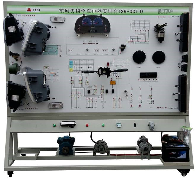 東風(fēng)天錦汽車全車電器實(shí)訓(xùn)設(shè)備采用全新東風(fēng)天錦整車電器實(shí)物為基礎(chǔ),充分展示汽車儀表系統(tǒng)、燈光系統(tǒng)、雨刮系統(tǒng)、喇叭系統(tǒng)、發(fā)動機(jī)電器系統(tǒng)、起動系統(tǒng)和充電系統(tǒng)等汽車電器各系統(tǒng)的組成結(jié)構(gòu)和工作過程。