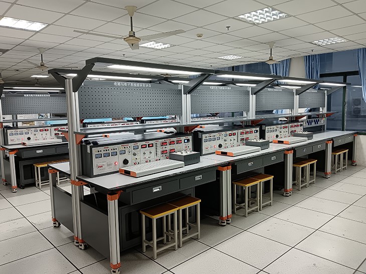 電路數(shù)電模電實驗平臺、模擬電路實驗實訓(xùn)室設(shè)備作為基礎(chǔ)實驗室,可承擔(dān)電子系、通信系和自動化系相關(guān)專業(yè)的《模擬電路》、《高頻電路》、《電子測量》等課程的所有實驗及仿真,以及電子和通信類專業(yè)綜合課程實訓(xùn)、畢業(yè)論文(設(shè)計)等。電路數(shù)電模電實驗平臺主要培養(yǎng)了學(xué)生的專業(yè)基礎(chǔ)知識素養(yǎng),提高了學(xué)生的實驗?zāi)芰蛻?yīng)用能力,并為教師教學(xué)創(chuàng)新、本科生畢業(yè)設(shè)計等提供了有利條件。