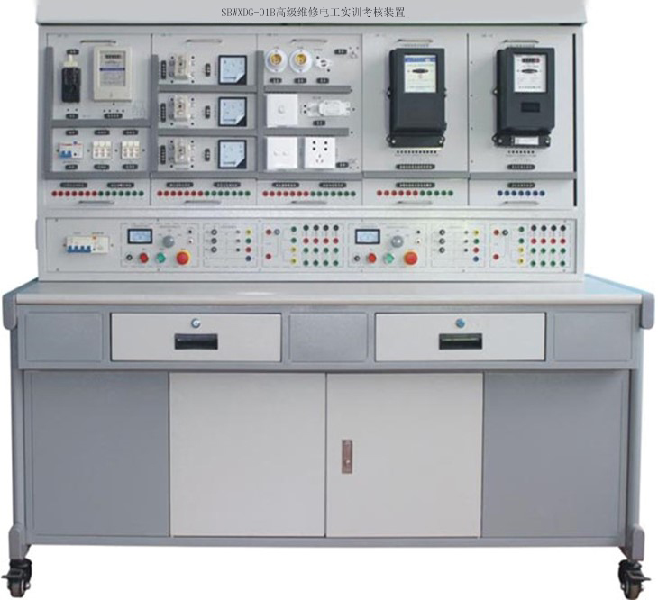 電氣安裝與維修實(shí)訓(xùn)考核裝置是根據(jù)工廠電氣安裝和室內(nèi)電氣安裝等維修 電工和電氣安裝工實(shí)訓(xùn)鑒定要求開(kāi)發(fā)的一種通用實(shí)訓(xùn)平臺(tái)。 適合于各類(lèi)職業(yè)院校 和技工學(xué)校維修電工、 電氣安裝工、水電工等有電氣實(shí)訓(xùn)要求的相關(guān)專業(yè)的作為 公共實(shí)訓(xùn)平臺(tái)使用。 采用鋼制網(wǎng)孔板和鋼制專用型材組接而成,安裝有自鎖式腳輪,方便移動(dòng)和使用。裝 置表面噴塑,色彩穩(wěn)重氣派。電氣安裝與維修實(shí)訓(xùn)裝置設(shè)計(jì)高度以人站在一級(jí)人字梯即可方便操作的高度,既安 全又能使使用者感受到施工現(xiàn)場(chǎng)環(huán)境。 橫向、 叢向?qū)挾群线m, 可以模擬現(xiàn)場(chǎng)線路的轉(zhuǎn)向布置。