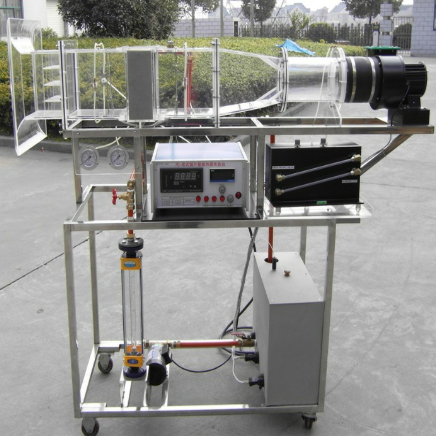 循環(huán)防腐水泵,轉(zhuǎn)子流量計(jì),翅片管式換熱器,風(fēng)洞實(shí)驗(yàn)段,離心式風(fēng)機(jī),自動(dòng)調(diào)節(jié)風(fēng)門,笛形管及差壓測風(fēng)速裝置,加熱由固體調(diào)壓模塊無級(jí)調(diào)節(jié),控制測試儀表箱,不銹鋼加熱水箱,巡檢儀顯示溫度、水和風(fēng)的阻力及風(fēng)速,不銹鋼臺(tái)架及控制屏。