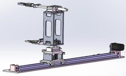 本站的功能是完成向各個工作單元輸送工件,系統(tǒng)分為雙機械手單元和直線位移位置精確控制單元兩部分,系統(tǒng)上電后,先執(zhí)行回原點操作,當?shù)竭_原點位置后,若系統(tǒng)啟動,供料站物料臺檢測傳感器檢測到有工件時,機械手整體先提升到位后手爪伸出到位后手爪夾緊,手爪夾緊到位手爪開始縮會機械手整體下將到位后,伺服電機開始工作按設定好的脈沖量到加工站。加工站到位后機械手整體提升,提升到位后手爪伸出伸出到位后機械手整體下降,下降到位后工件已放入加工站物料臺上,然后手爪松開,松開到位后機械手回縮,等加工站加工完成后再將工件送到裝配站進行大小料裝配,裝配完成后機械手抓取物料送到分揀站進行分揀,這樣雙機械手的一個加工運動過程就完成了。只要料筒不缺料會持續(xù)以上過程。當料筒出現(xiàn)缺料后,機器人會搬運過來物料,機械手會運行到取料位置抓取機器人上的小料,然后放入小料筒中,然后返回原點,當機器人再次搬運過來物料,機械手會運行到取料位置抓取機器人上的大料,然后放入大料筒中,這樣一個物料的拆分過程就完成了,直到把碼垛料臺上的物料全部拆分完成后為止。