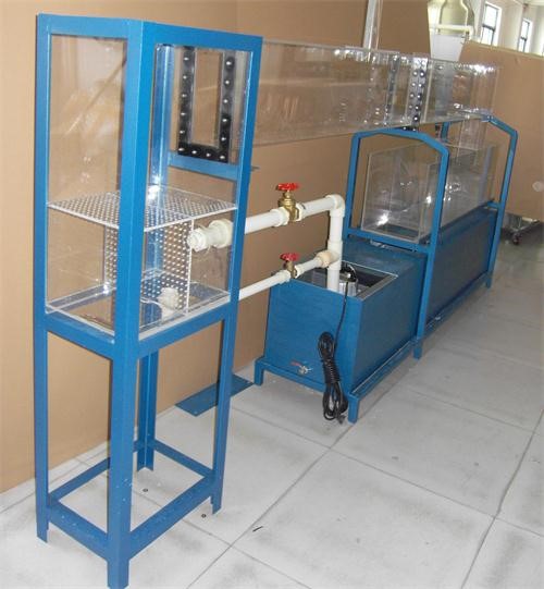 主要配置:實驗工作槽,三角量水堰、回水蓄水槽、供水段穩(wěn)水頭部、多種實驗?zāi)P汀y量儀器、供水泵、流量調(diào)節(jié)裝置等組成,空間三疊層緊縮布置。