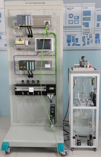 在具備PLC編程、線纜接線、PLC硬件組態(tài)、電氣調(diào)試、管路搭建、變頻調(diào)速控制的同時,重點突出攪拌工藝過程控制中常用傳感器的配線、采集、變送、信號轉(zhuǎn)換、以及PID控制策略的控制的主要實訓功能。