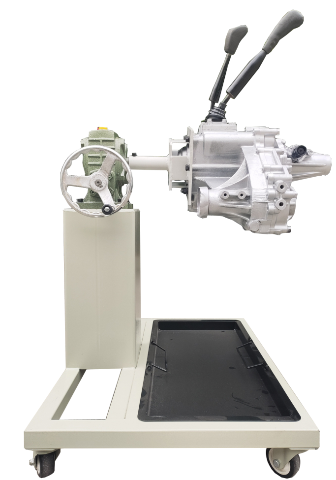 采用減速翻轉(zhuǎn)機構(gòu),可使變速器旋轉(zhuǎn)任意角度,并能任意位置鎖止,便于學(xué)生從不同的角度進行拆卸和裝配。