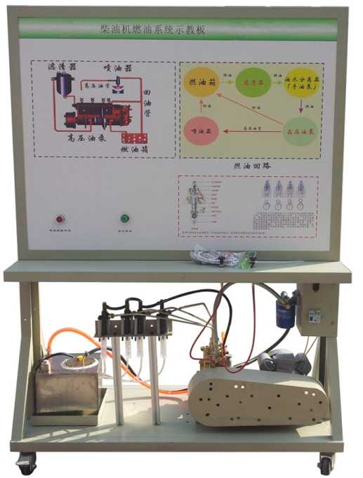 2.示教板面板采用耐創(chuàng)擊、耐污染、防火、防潮的高級鋁塑板,表面經(jīng)特殊工藝噴涂底漆處理;面板打印有永不褪色的彩色電路圖與工作原理示意圖;學員可直觀對照電路圖和實物,認識和分析柴油發(fā)動機燃油噴射系統(tǒng)的工作原理。