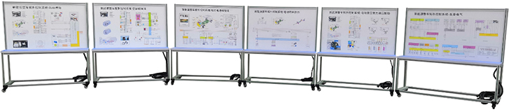 汽車檢測實訓(xùn)臺面板采用 ≥ 4mm 厚耐腐蝕、耐創(chuàng)擊、耐污染、防火、防潮的高級鋁塑板,表面經(jīng)特殊工藝噴涂底漆處理;面板打印有永不褪色的彩色電路圖;學(xué)員可直觀對照電路圖和原車實物,認(rèn)識和分析各控制系統(tǒng)的工作原理。