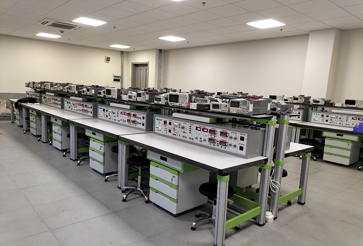 電路數(shù)電模電實驗平臺、模擬電路實驗實訓(xùn)室設(shè)備作為基礎(chǔ)實驗室,可承擔(dān)電子系、通信系和自動化系相關(guān)專業(yè)的《模擬電路》、《高頻電路》、《電子測量》等課程的所有實驗及仿真,以及電子和通信類專業(yè)綜合課程實訓(xùn)、畢業(yè)論文(設(shè)計)等。電路數(shù)電模電實驗平臺主要培養(yǎng)了學(xué)生的專業(yè)基礎(chǔ)知識素養(yǎng),提高了學(xué)生的實驗?zāi)芰蛻?yīng)用能力,并為教師教學(xué)創(chuàng)新、本科生畢業(yè)設(shè)計等提供了有利條件。