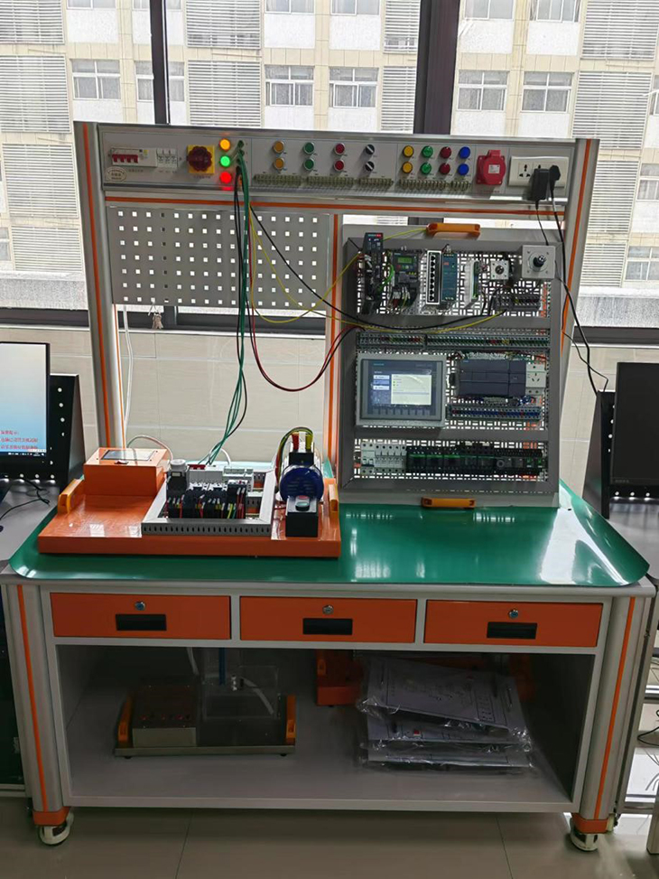 PLC與變頻控制實(shí)訓(xùn)室設(shè)備主要面向PLC系統(tǒng)設(shè)計(jì)師崗位,培養(yǎng)學(xué)生PLC基本編程、PLC小型控制系統(tǒng)的設(shè)計(jì)、變頻器使用與調(diào)試等能力。PLC與變頻控制實(shí)訓(xùn)室可進(jìn)行PLC操作技能的訓(xùn)練,PLC基本指令、步進(jìn)指令、功能指令編程訓(xùn)練,PLC控制系統(tǒng)的程序編制和調(diào)試,PLC應(yīng)用項(xiàng)目訓(xùn)練及PLC工程項(xiàng)目開發(fā),變頻器實(shí)訓(xùn)及項(xiàng)目開發(fā)研究。是自動化類專業(yè)、機(jī)電一體化專業(yè)和機(jī)器人專業(yè)《電氣控制與PLC技術(shù)應(yīng)用》、《PLC技術(shù)與實(shí)踐》、《變頻與伺服控制技術(shù)》等課程開展教學(xué)做一體化教學(xué)的主要場所。