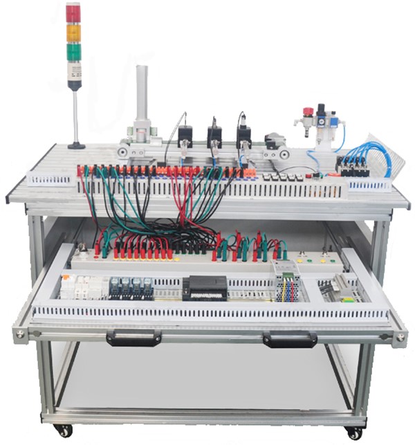電工電子與PLC實訓(xùn)臺通過上述實訓(xùn)設(shè)備,學(xué)生可在實訓(xùn)室中完成PLC的基本指令編程練習(xí)、三相異步電動機控制練習(xí)、PLC觸摸屏控制設(shè)計練習(xí)以及如流水燈控制、起重機控制、十字路交通燈控制、三層電梯控制等實際設(shè)計項目的練習(xí)。同時,通過外掛電子實訓(xùn)設(shè)備,學(xué)生可以通過實訓(xùn)驗證基爾霍夫定律、疊加原理、戴維南諾頓定理、雙口網(wǎng)絡(luò)、互易定理等電子相關(guān)定理。電工電子電拖PLC綜合實訓(xùn)考核裝置主要承擔(dān)《電工技術(shù)實訓(xùn)》、《PLC及其應(yīng)用》、《模擬電子技術(shù)實訓(xùn)》、《數(shù)字電路實訓(xùn)》、《電力拖動實驗實訓(xùn)》、《電力拖動實驗實訓(xùn)》、《PLC可編程控制器基礎(chǔ)電路實訓(xùn)