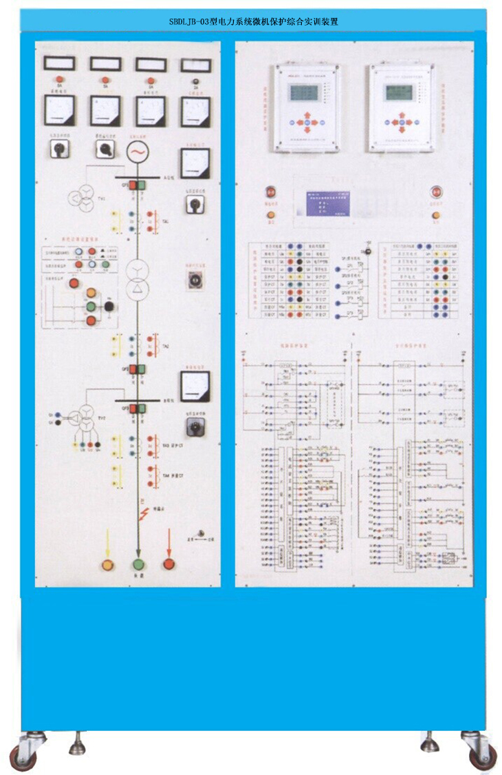 電氣工程綜合實訓(xùn)室設(shè)備主要服務(wù)于院校的電氣工程及其自動化和自動化兩個專業(yè),可以為《電力系統(tǒng)分析》、《電力系統(tǒng)繼電保護(hù)》、《電力系統(tǒng)自動裝置》、《工廠供電》、《電力工程基礎(chǔ)》、《電機(jī)的微機(jī)控制》、《嵌入式控制系統(tǒng)》等多門課程提供實驗或課程設(shè)計。