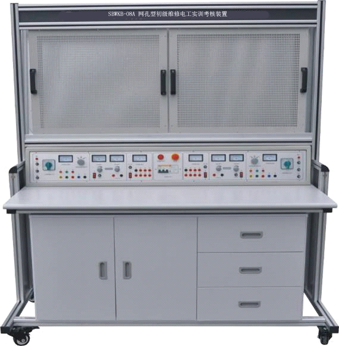電氣安裝與維修實(shí)訓(xùn)考核裝置是根據(jù)工廠電氣安裝和室內(nèi)電氣安裝等維修 電工和電氣安裝工實(shí)訓(xùn)鑒定要求開(kāi)發(fā)的一種通用實(shí)訓(xùn)平臺(tái)。 適合于各類(lèi)職業(yè)院校 和技工學(xué)校維修電工、 電氣安裝工、水電工等有電氣實(shí)訓(xùn)要求的相關(guān)專業(yè)的作為 公共實(shí)訓(xùn)平臺(tái)使用。 采用鋼制網(wǎng)孔板和鋼制專用型材組接而成,安裝有自鎖式腳輪,方便移動(dòng)和使用。裝 置表面噴塑,色彩穩(wěn)重氣派。電氣安裝與維修實(shí)訓(xùn)裝置設(shè)計(jì)高度以人站在一級(jí)人字梯即可方便操作的高度,既安 全又能使使用者感受到施工現(xiàn)場(chǎng)環(huán)境。 橫向、 叢向?qū)挾群线m, 可以模擬現(xiàn)場(chǎng)線路的轉(zhuǎn)向布置。